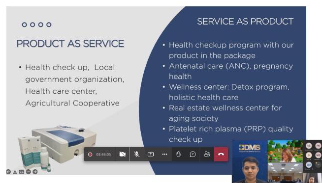 ในงานนี้ บริษัท ดีมีเทกซ์ โซลูชั่น จำกัด ร่วมกับ บริษัท รีเสิร์ช เอกซ์ จำกัด ผลักดันชุดน้ำยา DR. EX เข้าประกวดด้านเทคโนโลยีชีวภาพ (Biotechnology) ชุดน้ำยา DR. EX เป็นชุดน้ำยาที่ใช้เพื่อตรวจคัดกรองสารฆ่าแมลงจากการใช้ชีวิตประจำวัน ไม่ว่าจะเป็นการรับประทานอาหาร พืช ผัก ที่ปนเปือนสารฆ่าแมลง หรือจากการทำงานที่เกี่ยวข้องกับสารฆ่าแมลงเอง DR. EX จะเข้าไปทำหน้าที่เป็น Preventive Medicine เพื่อคัดกรองถึงความเสี่ยงที่อาจเป็นอันตรายต่อสุขภาพของผู้คนก่อนที่จะเกิดพยาธิสภาพหรือเกิดโรค อีกทั้งในกลุ่มของศูนย์บริการสุขภาพ (wellness center) ที่ต้องมีการใช้ซีรั่มในการบริการ DR. EX มีความเข้าถึงง่าย ลงพื้นที่ท้องถิ่นห่างไกล และ มีงานวิจัยและ มาตรฐานรองรับความแม่นยำ เราอยากร่วมเป็นหนึ่งในเทคโนโลยีด้านสุขภาพที่สร้างสุขภาวะที่ดีให้กับประชาชน ช่วยให้ประชาชนสามารถดูแลสุขภาพของตนเองได้อย่างสมบูรณ์แบบ